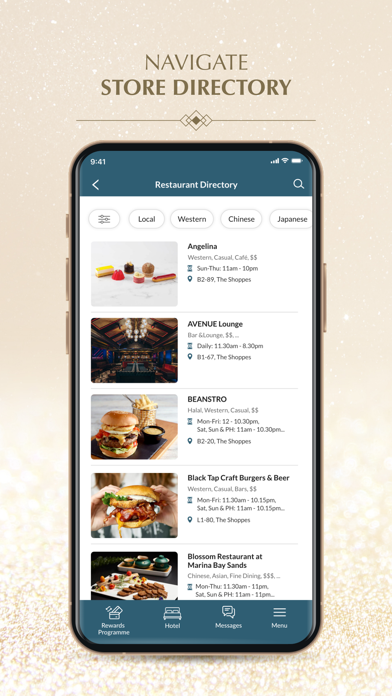 Get the latest promotions and offers, wayfinding, and instant access to your Sands Rewards account anywhere, anytime. DISCOVER LATEST PROMOTIONS Find out about our latest promotions and browse offerings from over 170 luxury and premium boutiques, over 80 dining options, and award-winning attractions. EARN & REDEEM YOUR REWARDS Sign up for your complimentary Sands Rewards membership and explore a world of rewards at Marina Bay Sands. Keep track of your Sands Reward Dollars balance on the go as you earn and redeem with your Sands Rewards e-Card. Plus, redeem your parking privileges instantly through the app.
