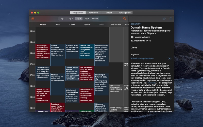 Your guide to the 37th Chaos Communication Congress from 27th to 30th December in the Congress Center Hamburg. Features: - In Englisch and German - Calendar or list style overview of all sessions - Filter sessions by language, room, track or skill level - Offline data: Find what you are looking for even if the WiFi is down - Watch live streams and video recordings right from inside the app - Download videos for offline watching - Import favourites from Halfnarp - Favorites - Reminders: Never miss a session - iCloud sync for favorites and reminders - Search for sessions and speakers - Receive updates via push Also check out the Congress iOS and Apple TV App Congress. More info about the event at https://events.ccc.de/