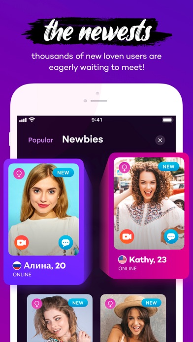 Swipe right, match and start talking... Meeting new people has never been easier! With loven you can chat or you can chat with camera. Send gifts to your loved ones and make them happy. * Send Gifts * Chat * Match * Popular and New Users * Slot * Video Call * View Your Recent Activity * View Your Last Match * Filtering If you want someone you like, anytime then make a one-to-one call again. Without any limitation, thousands of people from many countries are waiting for you! Set your preference using filtering. Join Loven right now and don't miss the chance to meet new people! ************** Loven is free to download and use, and that will never change for our main features. However, if you’re looking to get the most from Loven, you can subscribe to our optional subscription product VIP. Monthly, 3 month and 12-month subscriptions. The prices may vary per country and are subject to change without notice. Prices are clearly displayed in the app. * Payment will be charged to your iTunes account at confirmation of purchase. * Your subscription will automatically renew itself unless auto-renewal is turned off at least 24 hours before the end of the current period. * Your account will be charged for renewal within 24 hours prior to the end of the current period. * You can manage your subscriptions and turn off auto-renewal by going to your Account Settings in the iTunes Store. * If offered, if you choose to use our free trial, any unused portion of the free trial period will be forfeited when you purchase a subscription to that publication, where applicable * If you don’t choose to purchase a VIP membership, you can simply continue using and enjoying Loven for free. Your personal data is securely stored on Loven - be sure to read our privacy policy and EULA: https//www.loven-app.com/privacy.html https://www.loven-app.com/eula.html