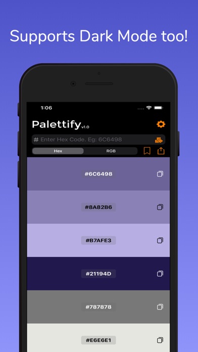 Ever wondered what colours go with a colour you chose? Had trouble choosing colours while building a website or painting? Well, me too! Palettify was built to solve that issue. It will tell you some colours that could go well with a colour you choose. You can copy the colour code as HEX or RGB, and even save the palette as an image! Palettify uses an internal colour matching algorithm that is based on colour theory. It doesn't have any ads or ask for unnecessary permissions. It also does not share what colour you choose with anyone. Here're couple of cool features of the app: - Search for colours using HEX or RGB values - Copy the colour code to your Clipboard - Choose a random colour if you want some inspiration - Export a colour palette as an image file, and save it to your Photo Library - Review how your colours look in real life with a feature to build a sample website with the colours in your palette. - Save/Bookmark a colour palette if you think you've hit jackpot - Completely supports Dark Mode - Multilingual. Currently has translations for: English (U.S.), English (International) and French (Canada). If you have any feedback, please feel free to email me! I'm also looking for folks who speak other languages, so if you want the app localised in your language, shoot me an email!