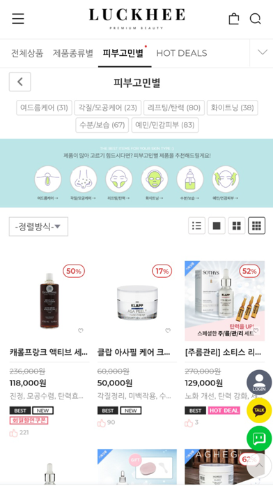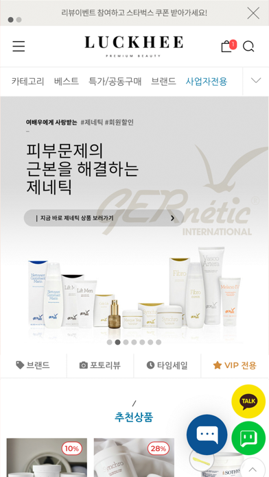 프리미엄 에스테틱 화장품 전문 편집샵 럭희 에스테틱 화장품, 홈케어 요령등 피부관리에 꼭 필요한 정보를 제공 - 1:1 맞춤 상담을 통한 고객 맞춤형 케어 서비스를 제공 - 매주 다양하게 제공하는 스페셜 쿠폰 할인 - 묶음상품 베스트 특가 - 공동구매 / 클리어런스 세일 다양한 브랜드의 제품을 가장 저렴한 가격에 럭희에서 만나보세요.