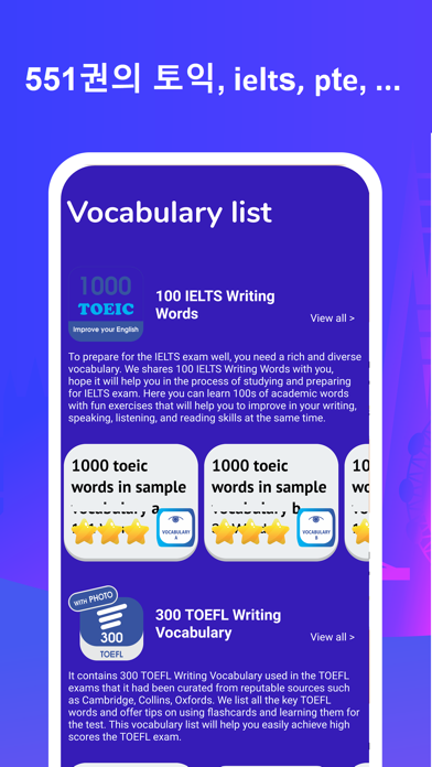 전 세계적으로 사랑받고 신뢰받는 “90,000 Words with Pictures PRO”는 Facebook에서 올해의 앱으로 선정되었습니다. 초급 또는 고급 학습자, 여행자 또는 비즈니스 전문가 - 이 Vocabulary 앱은 훌륭하게 작동하며 귀하의 요구에 맞게 동적으로 조정됩니다. 특징 : ► 고품질 오디오 발음 및 이미지. ► 학습(오프라인) 중에는 인터넷 연결이 필요하지 않습니다. ► 당신을 위한 많은 미니 게임이 있습니다. 게임을 통해 영어를 배우세요. ► 알림에 새로운 어휘를 모두 추가하면 매일 어휘를 학습하도록 알려줍니다. ► 자주 사용되는 어휘 ► 100% 무료: 유료 버전을 구매하기 위해 콘텐츠나 기능에 제한이 없습니다. 모든 것이 무료입니다. ► 이 언어 학습 앱으로 새로운 언어에 능숙해지세요 ► 한국어, 일본어, 중국어, 히브리어, 아랍어, 힌디어와 같은 다양한 알파벳 읽는 법을 배우세요 ► 각 단어에 대한 맞춤형 일러스트레이션을 통해 언어 학습을 쉽게 기억할 수 있습니다. ► 게임같은 언어수업으로 재미있게 언어학습 ► 언어 학습 진행 상황을 추적하고 보상을 받으세요 ► 초급부터 전문가까지 외국어 어휘 학습 ► IOS: https://itunes.apple.com/us/app/english-5000-word-with-picture/id1253833214?mt=8 사용 가능한 언어: - 미국 영어 - 영국 영어 - 스페인의; 카스티야의 - 한국인 - 독일어 - 네덜란드어 - 러시아어 - 폴란드어 - 중국어 (간체) - 중국 전통) - 아프리칸스어 - 아랍어 - 벵골어 - 체코어 - 덴마크어 - 프랑스어 - 포르투갈어 - 구자라트어 - 힌디어 - 인도네시아어 - 이탈리아어 - 일본어 - 스웨덴어 - 칸나다어 - 말라얄람어 - 말레이어 - 노르웨이어 - 루마니아어, 몰도바어, 몰도바어 - 터키어 - 슬로바키아어 - 세르비아어 - 타밀어 - 텔루구어 - 태국어 - 우크라이나 인 - 베트남어 100% 그림: 그림은 의미를 직접 전달합니다. 모국어를 전혀 사용할 필요가 없습니다! 중개자가 없습니다. 더 빠르고, 더 효과적이며, 물론 더 재미있습니다! :) 5분 세션: 연습 시간을 제한하는 것은 이상하게 들리지만 믿을 수 없을 만큼 중독성이 있습니다. 이는 학습에 매우 좋습니다. 진입 장벽이 0에 가까워서 변명의 여지가 없습니다. 가장 바쁜 날에도 5분 정도 시간이 있습니다! Qucik: 키보드 타이핑이 고통스러울 정도로 느립니다. 빠른 스와이프와 탭을 환영합니다! 우리를 믿으십시오. 빠른 학습 세션 중에 추가 시간이 필요할 것입니다. ;) 습관을 들이세요: "그림이 포함된 90,000 단어 PRO"는 당신을 언어 학습 중독자로 만들고 싶어합니다. 잘 확립된 습관이 없으면 효과는 아무 것도 아닙니다. 우리는 당신이 하나를 만들 수 있도록 도와드립니다! 어떤 피드백이라도 대단히 감사하겠습니다! 우려 사항, 권장 사항 또는 불만 사항이 있는 경우 [email protected]으로 연락해 주시면 개선하도록 노력하겠습니다! ================== 개인 정보 보호 정책: https://500000wordswithpictures.com/privacy-policy/ 이용약관: https://500000wordswithpictures.com/terms-and-conditions/ ================== 지금 시작하고 영어를 배우는 새로운 방법을 경험해보세요 원어민처럼 말하는 것이 결코 쉬운 일은 아닙니다.