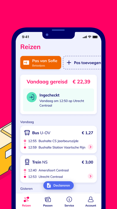 Met OVpay kun je in- en uitchecken met je betaalpas, creditcard of mobiel. Deze app hoort bij OVpay. Al eens met je (mobiele) betaalpas gereisd, of ben je dit van plan? Dan is deze app echt iets voor jou. Dit kun je allemaal in de app: • Bekijk of je in- of uitgecheckt bent Nooit meer onzeker of je wel of niet bent in-of uitgecheckt. Dit zie je bij je Reizen. Of zet een melding aan. Dan krijg je een melding op je mobiel zodra je bent in- of uitgecheckt. • Pas je in- of uitcheck aan Ben je toch een keer vergeten om in of uit te checken? Of is dit niet goed gegaan? Je past dit aan in de app. Dit kun je nog doen tot wel 60 dagen terug. • Al je ritten en reiskosten in één overzicht Onder het kopje Reizen vind je al je ritten. Je kunt terugkijken tot 18 maanden. • Maak een declaratieoverzicht Mag je je reiskosten ergens declareren? Je selecteert in de app de maand en de ritten die je in je overzicht wilt krijgen. De app doet de rest. Je krijgt je overzicht als pdf in je mailbox. Of deel het vanuit de app. • Meer passen aan de app toevoegen Reis je met verschillende passen? Goed nieuws! Je kunt nu meer dan 1 pas aan de app toevoegen. En geef ze direct ook een eigen kleur of naam. • Leeftijdskorting aan je pas toevoegen Heb je recht op leeftijdskorting? Dan kun je deze korting van 34% nu in de app aan je betaalpas toevoegen. Dit doe je door je naam, geboortedatum en foto door te geven. Natuurlijk blijven we de app uitbreiden met handige functies. Hou onze website, Instagram of Facebook in de gaten voor het laatste nieuws. Wie is OVpay? OVpay is een samenwerking van alle ov-vervoerders van Nederland: Arriva, EBS, GVB, HTM, Keolis, NS, Qbuzz, RET en Transdev. Samen met Translink. En alle grote banken van Nederland doen mee. Deze app hoort bij OVpay. Met OVpay check je in en uit met je betaalpas, je creditcard of je mobiel. In plaats van je OV-chipkaart. Privacy Met OVpay kies jij zelf de manier waarop je in- en uitcheckt. Om dit voor elkaar te krijgen, hebben we soms wat meer informatie van je nodig. We vinden het belangrijk dat je zelf beslist hoe je persoonsgegevens worden gebruikt. En door wie. In onze privacyverklaring (www.ovpay.nl/privacy) staat hoe we omgaan met je persoonsgegevens.