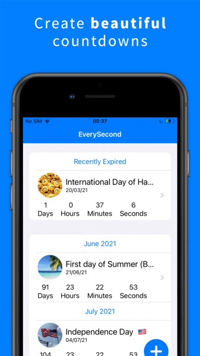 Perfect for birthdays, festivities, travels, vacation, anniversaries, weddings, retirement, exams and so on. These are EverySecond top features: • Designed for iOS, watchOS, iPadOS and macOS • Add beautiful countdowns • See public countdowns, constantly updated from our team • Add countdowns by starting from your contacts birthdays, calendar events and reminders • Add countdowns to your calendar • Choose images for countdowns from your camera, library or from Unsplash images • Share your countdowns with friends and family • See countdowns in full screen • Get seconds, minutes, hours, days, months and years remaining before an event • Recurrent countdowns • Save your countdowns in iCloud and share them across your devices • Dark mode • Archive your countdowns (pro feature) • Customisable app theme (pro feature) • Search for your countdowns in spotlight • Receive notification when countdowns complete • Receive daily reminders notifications (pro feature) • Receive push notifications for public countdowns and for updates For any doubt or suggestion, please visit http://everysecondapp.herokuapp.com/contact-us/ or write an email to [email protected] What are you waiting for? Download EverySecond right now, and never miss life important moments again!