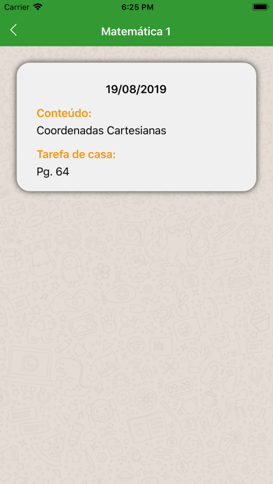 O aplicativo oferece: Para os responsáveis do aluno: - Transparência da escola e participação na vida dos alunos - Acompanhamento da vida acadêmica dos filhos a qualquer momento e em qualquer lugar Para o aluno: - Maiores recursos para o aprendizado - Escola presente e ao lado do aluno Funcionalidades: - Visualização de boletim; - Visualização de material publicado pela área pedagógica; - Recebimento de comunicados; - Impressão de boleto bancário (para responsáveis financeiros) com atualização de valores; - Preenchimento e impressão dos documentos para matrícula; - Visualização de notas e faltas parciais (a critério da escola); - Visualização de ocorrências (a critério da escola).