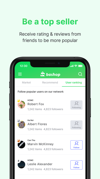 1. 친구와 함께 하는 안전한 직거래 당신의 친구가 파는 제품이라면 더욱 믿음이 가시죠? Bashop은 마음에 드는 제품을 발견했을 때 판매자가 당신의 친구인지, 친구의 친구인지 쉽게 확인할 수 있어 믿을 수 있는 직거래를 보장해 줍니다. 2. 무엇이든 팔 수 있어요 어떤 제품이든 당신이 판매할 수 있다면 등록하세요. 중고 제품, 홈메이드 제품, 최신 해외 직구 제품, 특가 제품 등 원하는 제품을 원하는만큼 올릴 수 있습니다. 제품 등록 역시 무료니까요. 3. 편리한 제품 등록 회원 가입 후 제품 사진 몇 장, 간단한 제품 정보만 기입하면 번거로운 절차 없이 바로 구매자들에게 제품이 즉시 노출됩니다. 판매자가 개인이든 사업자든 제품 등록 절차는 똑같이 간편합니다. 4. 1:1 채팅 판매자와 구매자는 Bashop의 1:1 채팅 기능을 통해 안전한 직거래를 만들어 갈 수 있습니다. 페북이나 잘로를 사용할 필요 없이 Bashop 자체 채팅에서 가격 흥정과 배송 뿐 아니라 판매/구매 조건을 직접 조율할 수 있습니다. 5. 지역 검색 내 근처에 있는 판매자라면 더욱 빠르고 편리한 거래가 가능하겠죠? Bashop은 지역 검색을 통해 내 위치에 가까운 판매자를 확인할 수 있습니다. 옆 동네 친구와 직접 만나서 거래하는 특별하고 설레는 재미가 있답니다. 6. 모든 서비스는 무료 별도의 회원비, 수수료가 없는 Bashop은 가입하기만 하면 모든 서비스를 무료로 사용할 수 있습니다. 판매된 금액은 모두 판매자의 것이고 Bashop에는 아무 것도 지불할 필요가 없습니다. 7. 파워 랭킹 거래 후 구매자의 별점 평가와 후기를 통해 누가 신뢰할 수 있는 판매자인지 쉽게 알 수 있답니다. 블랙 셀러를 피하고 화이트 셀러를 선택해 거래를 하고 싶다면 Bashop에서 제공하는 판매자 파워 랭킹을 확인해 보세요 8. 소상공인, 스타트업, 프리랜서 지원 소상공인과 스타트업, 프리랜서의 성공적인 판매 촉진을 위해 Bashop의 B2B 서비스를 신청해 보세요. 안정적인 제품 등록과 전문적인 마케팅, 그리고 배송 지원까지 해결해 드립니다.