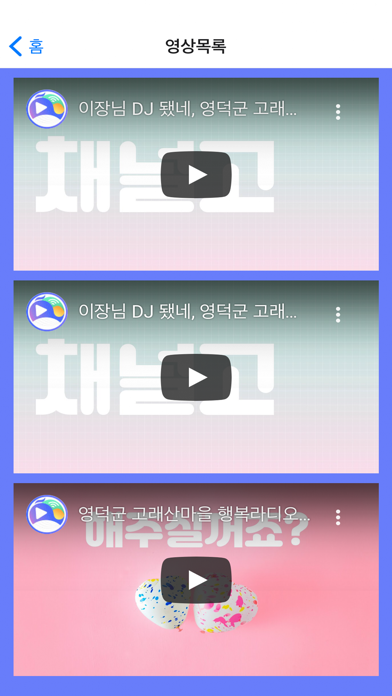 고래산마을 일반 사용자앱입니다. * 기능 - 유튜브 링크 ( 더보기 ) 고래산마을 채널의 대표 영상을 시청할 수 있고 더보기를 눌러 다른 영상도 시청 가능합니다. - 고래산마을 들리는 라디오 ( 더보기 ) 고래산마을 채널의 대표 라디오를 재생할 수 있고 더보기를 눌러 다른 라디오도 재생할 수 있습니다. - 공지사항 고래산마을의 공지와 사진, 동영상을 조회할 수 있습니다. - 대표 갤러리 고래산마을의 최근 공지 3개와 연결되어있는 대표이미지 슬라이드를 볼 수 있습니다. ( 공지가 없다면 사진이 표시되지 않습니다. )