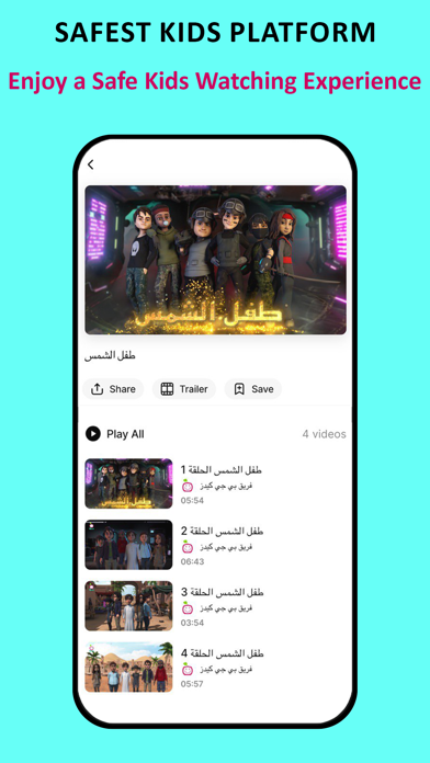 PG Kids is a safe and original entertainment and edutainment platform made just for kids! Created in collaboration with educational experts, loving parents, and top creative talents, PG Kids offers thousands of original cartoons, songs, and shows—all tailored for young minds. Enjoy a worry-free viewing experience for your child, with no ads, age-appropriate content, and a kid-friendly design. One account supports up to four users, perfect for siblings, family, or friends. Watch anywhere—on your mobile, tablet, laptop, or Smart TV. Discover fun adventures, heartwarming stories, catchy songs, and engaging educational content. New shows and episodes are added regularly to keep your child learning and laughing every day. Key Features • Thousands of original Arabic and English series & songs • Curated by educators and child development experts • 100% safe: No ads, no interruptions • Kid-friendly interface with easy navigation • Subtitles available for many shows • Smart search and personalized favorite list • Unlimited streaming, anytime and anywhere • Works on Mobiles, Tablets, Laptops, and Smart TVs • Global access with localized content • Free trial — cancel anytime, no commitment Our app offers auto-renewing subscriptions. You'll receive unlimited access to content on all your devices. Payment is charged to your account at confirmation of purchase. Pricing varies by location and is confirmed prior to purchase. Subscription automatically renews each month unless canceled at least 24 hours before the end of the current billing period, or the trial period (when offered). Cancel anytime in Account Settings. Terms of Service: https://pg-kids.com/terms Privacy Policy: https://pg-kids.com/privacy
