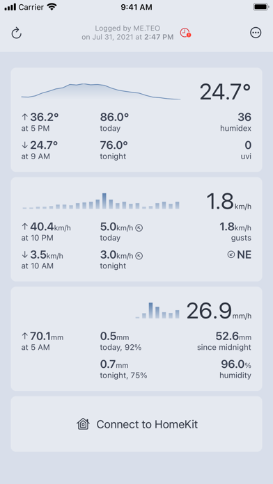 With Me.teo, your Personal Weather Station (PWS) becomes even more powerful. Connect your PWS, whether it's from Ambient Weather, My Acurite, Tempest, Ecowitt, Davis Instruments, LaCrosse, Netatmo, or other compatible brands, to the Weather Underground service (wunderground), and unlock a world of weather insights. Me.teo is the ultimate companion for PWS owners, providing real-time access to your PWS data and historical records. Dive deep into temperature, rainfall, wind speed, and more, all displayed in a visually pleasing and user-friendly interface. With Me.teo, seamlessly integrate your PWS into the Weather Underground network, and explore a rich set of features tailored specifically for your PWS. Whether you're a weather enthusiast or want to keep a close eye on local conditions, Me.teo is your go-to app. Visualize and analyze your PWS data like never before. Whether it's checking current conditions, reviewing past trends, or customizing data visualizations, Me.teo delivers the tools for in-depth exploration of your PWS. Download Me.teo now and take control of your PWS experience. Get accurate insights, track weather trends, and harness the power of Weather Underground and your Personal Weather Station (PWS) to stay informed and prepared. Terms of use: https://www.apple.com/legal/internet-services/itunes/dev/stdeula/ Privacy policy: https://meteo.fan/legal/privacy/