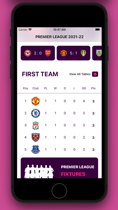 Are you a fan of English Premier league? Will you like to receive latest updates on Premier league and make the most of your sportsmanship fan experience? If that is the case, this amazing PREMIER LEAGUE OFFICIAL - EPL is the perfect pick for you. Now you can get all the important information about English Football Premier League in a single place. Skip the hassle of switching channels or searching online for match scores as you can use this app to get rapid updates. This app provides all the info about the league like teams, match fixtures, points table, result scores, player stats etc. Try Premier League 2021/22 now! Get Latest English League Scores Official and free to download, the Premier League 2021/22 is the definitive companion to the world’s most watched league. Access minute-by-minute updates of your favorite English league and keep a close eye on the player performance, score cards, match schedule, results and more for a wholesome sports experience. Premier League Team Updates Teams participating in the Premier League 2021/22: - Arsenal - Aston Villa - Brighton & Hove Albion - Burnley - Chelsea - Crystal Palace - Everton - Fulham - Leeds United - Leicester City - Liverpool - Manchester City - Manchester United - Newcastle United - Sheffield United - Southampton - Tottenham Hotspur - West Bromwich - West Ham - Wolverhampton Wanderers Accurate Score and Statistics Instead of following multiple sources to get match insights, you can rely on this simple and easy to use platform to offer accurate updates and statistics according to your preferences. Dive deep into the thrill of watching English Premier league and experience football like never before. Amazing features of Premier League 2021/22 - Simple and easy to use premier league score app UI/UX - Immersive interface with clutter-free controls and rapid alerts - Enable push notifications to get score updates, match schedule, results, etc - Premier League Football News, Fixtures, Scores & Results - English League Table & Standings - Detailed statistics providing insight on key performers in each position - In-depth profiles on all players to have played for a Premier League Club Are you ready to enjoy English Football Premier league like you have never done before? Download and use Premier League 2021/22 today!