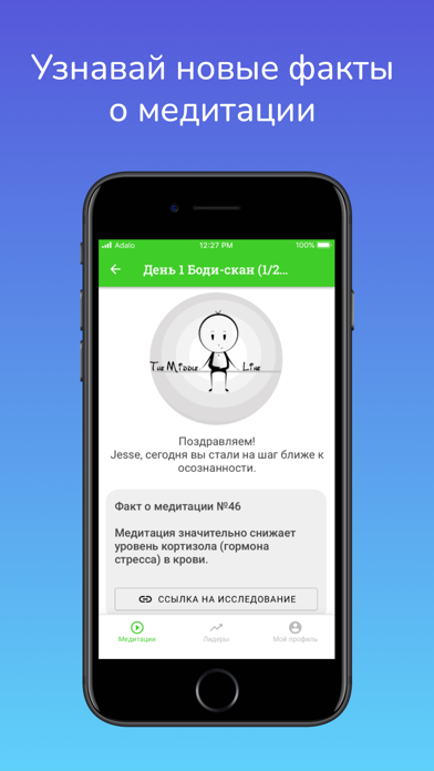 - БЕСПЛАТНЫЙ 10-дневный курс по медитации осознанности (майндфулнес) - Видео о теории медитации и неформальных практиках осознанности - Научные факты о положительном влиянии медитации на здоровье - Таблица лидеров, чтобы отслеживать прогресс коллег и друзей