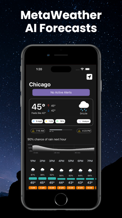 Forward thinking. Intelligent. Accurate. There are a TON of weather apps out there that simply offer weather data and radar. MetaWeather takes it a step further: - All of the standard elements of a weather app- radar, alerts, current data, 100 hours and 10 day outlooks - Generative AI forecasts that are simple to read and understand - Themes, custom app icons, home screen widgets, rearrangeable content... customization galore! - A frequently updated blog with relevant weather headlines - Accurate data from Apple Weather, laid out in a beautiful, unique fashion Everyone on Earth— from the USA to Europe to Africa and beyond— has been keep in mind. We support global locations and custom units for temperature, speed, visibility, and measurement. The blog focuses on global weather headlines. Radar is supported worldwide. This isn’t just your standard weather app. Our goal is not to compare- it is to contrast. This is a unique experience designed for the mid-2020s and beyond. Forward thinking. Simply. Powerful. MetaWeather. -- You may purchase an auto-renewing subscription through an In-App Purchase named MetaWeather+. • Auto-renewable, 1-month subscription • Privacy policy and terms of use: https://nathanranthony.wixsite.com/metawx