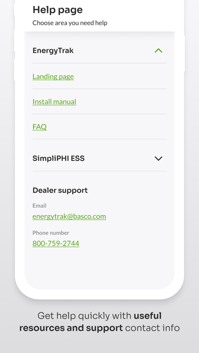 EnergyTrak™ provides advanced system monitoring through a streamlined mobile app that delivers real-time status and updates, plus intuitive control over the SimpliPHI™ Energy Storage System (ESS). EnergyTrak gives you peace-of-mind — even when on the go — that your SimpliPHI ESS is providing the critical energy solution you need it to, whether that is optimizing for higher-rate time-of-use (TOU) periods or providing backup power needs. This smart control system makes the installation and setup of the SimpliPHI ESS fast and secure for installation professionals. With easy-to-understand prompts and notifications, EnergyTrak is the simplest, most accessible interface for energy storage systems. Owner and Pro User Features: - User Profile Management - Site Dashboard - Change System Configuration - Site-Level Data Export - Help and Support - EnergyTrak Gateway OTA Updating - SimpliPHI ESS OTA Updating Pro User-only Features: - Site Creation and Management - Site Fleet Tracking - Pro and Owner User Creation and Management - SimpliPHI ESS Commissioning