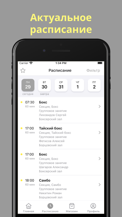 NAMODE GYM — Это абсолютно новый взгляд на искусство единоборств и спорта. Мы учитываем пожелания и поставленные цели каждого нашего клиента и комплексно подходим к развитию каждого отдельного бойца. Мы знаем, что важно не только физическое развитие, но и здоровье и психологический подход к бою и соревнованиям, поэтому Namode Gym предоставляет услуги не только профессиональных тренеров, но и квалифицированных специалистов таких, как остеопат, массажист, диетолог и психолог для помощи в моральной подготовки и настрою. Тренируясь в нашем клубе вы сможете не только освоить искусство единоборств для себя, но испытать себя в соревнованиях и развиться до профессионального уровня. Мы способствуем и предоставляем возможность участвовать во всех официальных соревнованиях, выезжать в другие страны, проводить профессиональные бои, участвовать в сборах. В приложении вы можете: - Посмотреть актуальное расписание - Записаться на групповые и персональные занятия - Посмотреть остатки услуг в личном кабинете - Купить новый абонемент - Найти контактную информацию о клубе The app was created for the NAMODE GYM club. Club of martial arts. Club clients can use the app to view the club's schedule, the rest of their services, and sign up for classes. The app is completely free. You can use the app without authorization to view the class schedule. But to sign up for a class and see the rest of the services, you need to log in. The club administrator creates a user in their account system. After that, the user can log in to the app. A user account was created to test the app [email protected] and password 89185536054