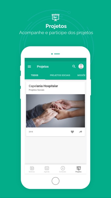 Recursos disponíveis no Aplicativo: Notícias, Agenda da igreja, Eventos, Conteúdos, Projetos, Transmissão ao Vivo e Módulo Ensino.