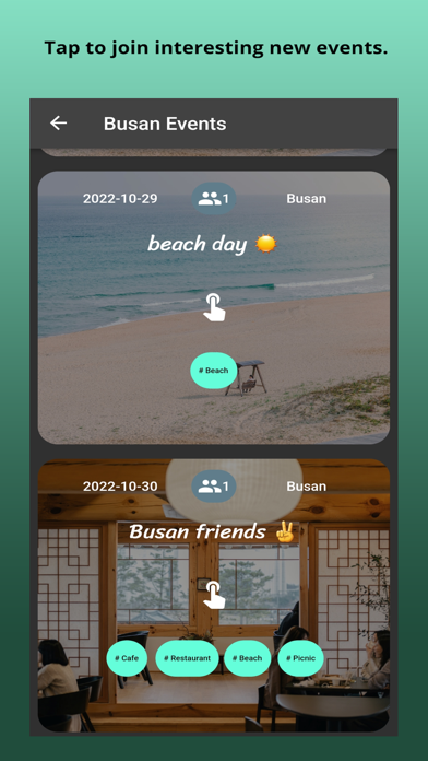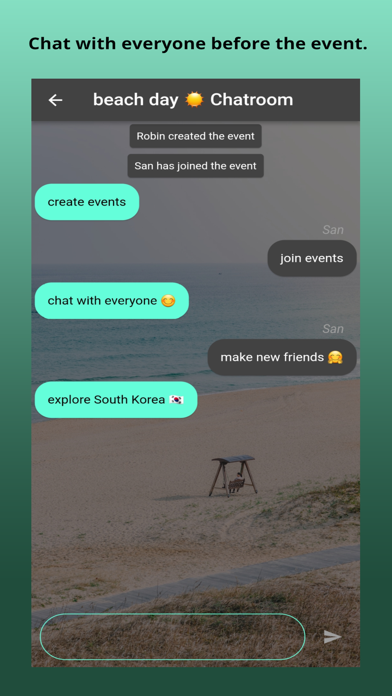I came to South Korea with no friends, understood very little Korean and lived in the countryside where the expat and english speaking population was non-existent. Meeting people and making friends became an unexpectedly challenging task. Expat life should be exciting, fun, and full of adventure, however, the reality is that daily life as an expat can be difficult, frustrating, and highly demotivating. Especially if you have no friends or support network. Chingu_s encourages users to explore ALL of Korea and its beauty whilst making new friends to share these extraordinary experiences with. Chingu_s lets you create events, join events, participate in group chats and meet people everywhere in South Korea. Planning a trip somewhere for the weekend? Create an event in the area, and meet new people when you get there! Features: Create your account Login Create events Browse events all over South Korea Join events Chat with participants in the event chatroom Delete or leave an event whenever you want Long tap messages and events to report or filter Meet new people make new friends!