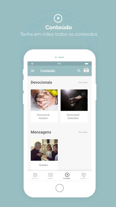Recursos disponíveis no Aplicativo: Notícias, Agenda da igreja, Eventos, Conteúdos, Projetos, Transmissão ao Vivo e Módulo Ensino.