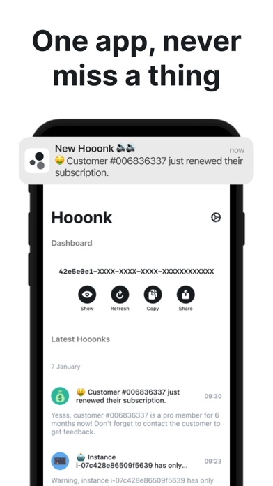 Welcome to Hooonk, the ultimate app for staying up to date on the things that matter most to you. With Hooonk, you can easily customize your alerts to receive notifications about the latest updates from your favorite sources. Simply use the code displayed in the app and visit https://hooonk.com/docs to get started. It's that easy! Terms of Use: https://www.apple.com/legal/internet-services/itunes/dev/stdeula/ In addition to personalized alerts, Hooonk also offers a sleek and easy-to-use interface for browsing and reading updates. Don't miss a beat - download Hooonk today and stay on top of the important updates that matter most to you!