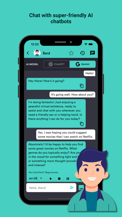 Welcome to Gemin AI Chat & Art Generator, Art, a cutting-edge application harnessing the power of multiple AI technologies to bring you an unparalleled experience. Developed using OpenAI's ChatGPT API and now enhanced with Google's Gemini's Vertex API for AI chat and assistance, along with the latest Stable Diffusion API for AI art generation, this app offers a seamless blend of conversational AI and creative expression. Whether you seek to craft extensive content such as essays, emails, songs, poems, articles, or simply engage in casual conversations, Gemini AI Chatbots and AI Assistants are here to cater to your needs. Continuously evolving with state-of-the-art AI technology, this app adeptly comprehends and responds to an extensive array of topics and queries. Gemin AI Chat & Art Generator, Art Features: * Interact with Bard, Jenny, Tristan and many more interesting AI chat companions. * Harnessing the latest AI advancements * Diverse use cases and ready-made templates * Text and Image Generation capabilities * Comprehensive Multi-language support Our multi-lingual speech support ensures seamless communication with our chatbots in your preferred language, transcending linguistic barriers. But that's not all—our AI-powered Smart Assistant boasts an extraordinary ability: generating high-resolution, detailed images from textual descriptions. The AI Art feature brings to life a plethora of images, spanning abstract concepts, real-world objects, and even fantastical creations. Embark on a journey into the future with Gemin AI Chat & Art Generator, Art. Experience the amalgamation of cutting-edge AI from OpenAI's ChatGPT, Google's Gemini's Vertex, and the latest Stable Diffusion API, empowering you to converse, create, and envision like never before.