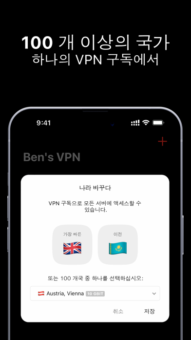 160개 이상의 국가에서 사용 가능한 개인용 VPN입니다. 모든 위치에 대한 완전한 액세스로 3일 무료 평가판을 즐기세요. 최대 10 Gbps 대역폭의 초고속 서버가 제공됩니다. Ben's VPN은 다음 국가에 서버가 포함되어 있습니다: 오스트리아, 알바니아, 알제리, 아르헨티나, 아르메니아, 호주, 아제르바이잔, 바레인, 방글라데시, 벨라루스, 벨기에, 보스니아, 브라질, 불가리아, 캄보디아, 캐나다, 칠레, 중국, 콜롬비아, 코스타리카, 크로아티아, 키프로스, 체코 공화국, 덴마크, 에콰도르, 이집트, 엘살바도르, 에스토니아, 핀란드, 프랑스, 그루지아, 독일, 가나, 그리스, 과테말라, 온두라스, 홍콩, 헝가리, 아이슬란드, 인도, 인도네시아, 우크라이나, 아일랜드, 맨 섬, 이스라엘, 이탈리아, 일본, 요르단, 카자흐스탄, 케냐, 한국, 쿠웨이트, 키르기스스탄, 라트비아, 레바논, 리투아니아, 룩셈부르크, 마케도니아, 말레이시아, 몰타, 멕시코, 모르코, 모잠비크, 네팔, 네덜란드, 뉴질랜드, 니카라과, 나이지리아, 노르웨이, 오만, 파키스탄, 파나마, 페루, 필리핀, 폴란드, 포르투갈, 푸에르토리코, 루마니아, 사우디아라비아, 세르비아, 싱가포르, 슬로바키아, 슬로베니아, 남아프리카, 스페인, 스웨덴, 스위스, 대만, 태국, 튀니지, 터키, 아랍에미리트, 영국, 우루과이, 미국, 우즈베키스탄, 베네수엘라, 베트남. 우리는 매주 Ben's VPN에 새로운 위치를 추가합니다. 이용 약관: https://bensvpn.com/app-terms-of-service