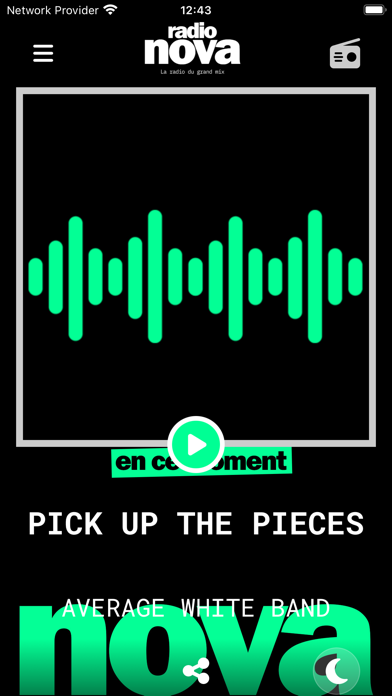 Radio Nova, la radio musicale de référence. Le Grand Mix à emporter partout ! . Écoutez Radio Nova en direct. . Réécoutez tous les programmes en podcasts. . Découvrez nos webradios créées et mises à jour par les programmateurs de Radio Nova. . “C’était quoi ce titre” : mettez la main sur toutes les pépites diffusées sur nos radios. . Air Play : écoutez Radio Nova sur votre système son.