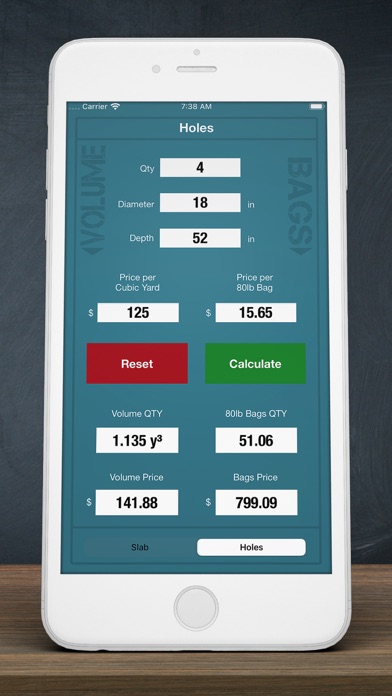 - Also available: DIY Concrete METRIC - DIY Concrete Imperial - Concrete Volume and Price Calculator. Created for both the DIY Handyman and the Professional Trades Person. DIY Concrete Imperial - is a handy, easy to use application to help you work out the volume of concrete (cement) required for your project, in cubic yards or 80LB pre-mixed Bags. Also calculate Concrete required volume for Holes. DIY Concrete Imperial - is useful to the DIY Home Handyman as well as professional trades people, as a quick and simple way to calculate your concrete volume and price requirements. This application calculates the volume you require when ordering for a large amount that will be delivered by truck, as well as a 80LB Pre-mixed Bag calculator for the smaller DIY Handyman projects. As well as calculating the volume, you can also add the cubic yard price or pre-mix bag price to give you an overall cost of the concrete order. All you need to do is enter the Length, Width in feet and the Depth in inches. The price component is optional. Then press the calculate button. Also included are a couple of DIY Concrete Tips for on-site 90 degree set-out and the ratio for a standard concrete mix.
