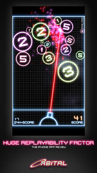 “앱 뒤 주르”가 드리는 오늘의 무료 앱 엄지 손가락 하나만으로 즐길 수 있는 이 놀라운 게임을 직접 확인해 보세요.ORBITAL은 궤도를 파괴하면서 점수를 획득해 목표를 달성하는 중독성 퍼즐 게임입니다.어느 누구나 즐길 수 있는 간단한 퍼즐 게임! 화려한 그래픽, 엄청난 사운드는 물론 게임 시간이 짧아 언제든지 즐길 수 있습니다. Orbital 게임은 다수의 상을 수상하고 일본, 노르웨이, 스위스 등의 여러 국가에서 10위 안에 들었던 최고의 게임입니다.뉴욕타임즈는 이 게임을 “스마트폰의 기능을 더욱 돋보이게 하는 환상적인 어플리케이션 중 하나”이며 “주저 없이 다운로드할 수 있는 멋진 게임”이라며 찬사를 보낸 바 있습니다. 주저하지 마세요! 지금 경험해 보세요! Orbital 무료 버전을 다운로드한 다음 스마트폰에서 제대로 실행되는지 확인하세요. 수상 경력: *Game of the Year denki.co.uk *Winner DiscoveryBeats Apps Contest *Silver Award pocketGamer.co.uk ----------------------------------------- 수상 최고 등급 - jayisgames.com SILVER AWARD - pocketgamer.co.uk ----------------------------------------- 비평가의 논평 «처음에는 쉽지만 몇 분만 지나면 난이도가 증가하는 Orbital은 애매한 시간을 채워줄 수 있는 뭔가를 찾는 사람들에게는 더 할 나위 없이 좋은 심플한 스타일의 게임이다.» 8/10 - Keith Andrew (pocketgamer.co.uk) «Orbital과 같은 게임플레이 방식을 공유하는 몇몇 게임들이 나와 있지만, 오비탈만큼 시간과 공간의 제약을 뛰어넘는 멋진 게임은 없다.» - Eli Hodapp (toucharcade.com) «BitForge는 중독성 있는 게임인 페글(Peggle)과 두 가지 디지털 크랙 형식의 지오메트리 워즈(Geometry Wars)의 아름다움을 패키지 형태로 결합하는 노력을 해왔습니다.» - Chad George (thatvideogameblog.com) «Orbital은 심플한 게임 방식에 독특한 “gravity”과 화려한 그래픽이 결합된 멋진 게임이다.» 이 게임을 하면서 아주 불만스러운 때도 있지만 결국에는 다른 게임을 볼 수 없게 만드는 매력이 있다.4/5 - Will Raskin (148apps.com) «Orbital은 환상적인 그래픽과 까다롭지 않은 기능을 갖추고 있다.내 생각에 이 게임에는 정말 부정적인 면이 하나도 없다.Bitforge, 파이팅!» 5/5 - Yoyo (iphonefootprint.com) ----------------------------------------- 게임 방식 컬러풀한 오비탈을 그리드에 발사합니다.오비탈이 멈추면 장애물(벽 또는 게임 필드에 있는 다른 오비탈)을 파괴할 때까지 오비탈이 계속 자랍니다.이제 다음과 같이 오비탈이 파괴될 때까지 몇 번 발사해야 합니다 오비탈을 파괴할 때마다 1점을 획득하게 됩니다.점수는 무제한으로 획득할 수 있지만 한 가지 문제가 있습니다.발사한 오비탈이 대포 위에 있는 데드라인에 닿으면 안 됩니다.데드라인에 닿으면 게임 오버! 몇 점 획득하셨나요? ----------------------------------------- 기능 - 1인 및 & 2인 플레이 모드 - 3가지 게임 모드: Gravity, Pure , Supernova - 아름다운 입자 효과 - 24시간 온라인 리더보드 - Facebook 연결: Facebook 친구들과 비교해 보세요. ----------------------------------------- ORBITAL은 Wouter Visser의 Gimme Friction Baby 게임을 바탕으로 제작되었습니다.