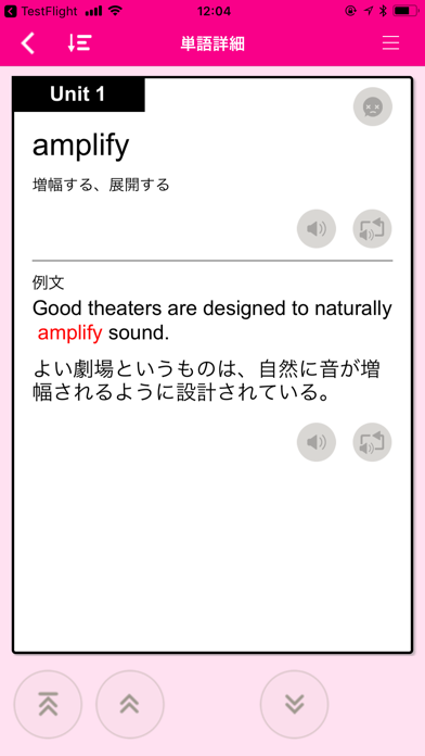 ◆『PowerWords』シリーズアプリの特長 アルクが選んだ重要単語リストSVL12000を学習するアプリです。 最大の特徴は、間違えた単語の出題率を調整し、 一定の正解率になるまで出題する「スパイラル学習法」。 何度も間違えた単語はブラックリストに登録し、 しつこく出題、覚えるまで止められません! ◆本アプリはこんな方にオススメ ・上級レベルの方 ・英検1級、TOEIC860点以上相当の方 ・TOEIC高得点を狙っている方 ◆本アプリの単語数 ・英文雑誌の読解、TOEIC高得点に役立つ2000単語 ◆主な機能 ■ユニット学習 (1)「英=>日」で聞く。 英単語と意味を音声つきで表示。 (2)覚える 意味を覚える問題:単語を見て、意味を選択肢から選びます。 単語を選ぶ問題:単語の意味を見て、正しいスペリングを選びます。 スペリング完成問題:単語の意味を見て、英単語のスペリングを入力して完成させます。 (3)「日=>英」で思い出す。 意味を見て、英単語を想起する練習です。 ■ゲーム (1) ハングマン ヒントを元に、単語のスペリングを推測し入力します。 (2) 聞き取りクイズ(ディクテーション) 例文の音声を聞取ってスペリングを入力します。 ■全レベル単語リスト ・本アプリに収録の単語と例文の一覧(音声つき) ・ブラックリスト登録単語の一覧 ・他レベルに収録の単語の一覧 ◆PowerWordsシリーズ レベル一覧 ・2000レベル:入門レベル(英検5~4級、TOEIC400点未満相当) ・4000レベル:入門~初級レベル(英検3~準2級、TOEIC400~500点相当) ・6000レベル:初~中級レベル(英検準2級~準1級、TOEIC550~650点相当) ・8000レベル:中~上級レベル(英検準1級、TOEIC650~860点相当) =>10000レベル:上級レベル(英検1級、TOEIC860点以上相当) ・12000レベル:最上級レベル(英検1級、TOEIC860点以上相当) ※対応する英検、TOEICの級、スコアはあくまでも目安です。 ◆PowerWordsシリーズの単語 アルクが選んだ重要単語リスト、SVL12000を使用しています。SVL12000とは、アルクが長年蓄積してきた膨大な英文データから「日本人英語学習者にとっての有用性」「ネイティブスピーカーの使用頻度」を基準に選び出した、12000語の重要英単語リスト、標準語彙水準12000(Standard Vocabulary List[略称SVL12000])のこと。レベル1~12まで1000語ごとに定義されています。本シリーズを制覇することで、最上級レベルまでの単語を徹底マスターできます。