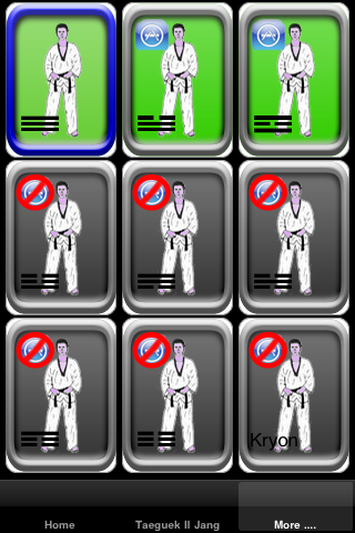 First ever Taekwondo Personal Trainer. Practice at your own pace and at the comfort of your home. No more doubts half way through Poomsae whether you did the right move and what's next... This App gives a very clear step by step images for each Poomsae, assisting you to practice your technique to perfection. Watch it step-by-step by clicking the move and back arrows, or touch the iPhone screen constantly and watch the Poomsae moves change in sequence. Additional Poomsaes can be purchased by clicking the "More..." tab and selecting the desired Poomsae.