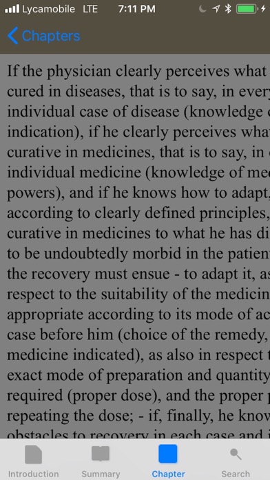The iPhone/iPod/iPad version of iOrganon is prepared in memory of Dr. Samuel Hahnemann(1755-1843) who is the father of Homoeopathy.The book is divided into three sections Introduction,Summary and Full paragraphs reading. It provides an excellent search facility to make a word search in the entire book. Unlike web search and reference,it does not need Internet connection for reading the book. The user can read the book by order of paragraphs and he can continue from last point if he quit the application and launch it again. In the search view the end users can read the paragraphs with the search word highlighted in red color.