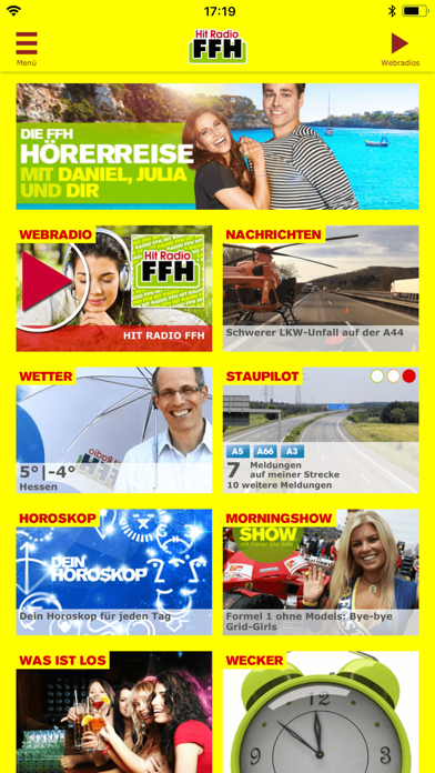 Die umfangreichste deutsche Radio-App mit 23 verschiedenen Webradios, personalisierbarer Startseite und allen wichtigen Infos für deinen Tag. Hol dir die Infos auf die Startseite, die du brauchst. Staus auf deiner Strecke, das Wetter in deiner Stadt, Nachrichten aus Hessen und deiner Gegend, das Horoskop für dein Sternzeichen und vieles mehr. Stell dir jetzt deine persönliche, ganz eigene Radio-App zusammen – mit den Themen, die nur dich interessieren! Feste, Märkte, Veranstaltungen, Ausflugstipps – du verpasst nichts mehr mit den Empfehlungen der FFH-Reporter. Karten und Tickets für die Top-Konzerte und Comedy-Events in Hessen bekommst du bequem in der FFH-App. Mobile Blitzer melden geht jetzt ganz einfach: Tippe auf den Mikrofon-Button und sage, wo der Blitzer steht. Sobald du den Finger wieder vom Display nimmst, ist deine Sprachnachricht schon – schwupps – im FFH-Studio. Genauso einfach kannst du dir Hits wünschen oder Feedback geben. Mit der Webcam hast du den Blick auf die FFH-Moderatoren, die Playlist zeigt, welche Hits gerade laufen und wir informieren dich über das aktuelle Gewinnspiel. Schick uns deine Schnappschüsse und werde FFH-Augenzeuge. Lass dich von uns wecken und checke was es Neues aus der FFH-Morningshow gibt. Jede Menge Themen und Geschichten warten auf dich. Auf 23 Livestreams kannst du online Webradio hören – zum Beispiel: Top 40, 80er Musik, 90er Hits, Eurodance, Brandneu, Partyhits, Rock, Deutsch pur, Workout, Lounge, Schlager Radio, Leider geil… Nichts mehr verpassen: Benachrichtigungen bringen Schulausfälle, Staus auf deiner Strecke, wichtige Hessen-News oder neue FFH-Aktionen auf dein Display. Die FFH-App für iPhone, iPad und iPod touch jetzt kostenlos laden. Und falls es mal klemmen sollte oder bei dir etwas nicht ganz reibungslos funktioniert: Bitte schreib uns! Wir haben extra eine Kontakt-Seite angelegt unter der du uns sofort erreichst. Deine Anfragen helfen uns, die App noch besser zu machen: FFH.de/appsupport