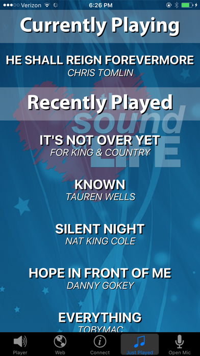 Take the Sound of LIFE with you wherever you go! Listen to our Real Life - Real Change contemporary music mix and get connected to the positive message of Jesus Christ on your iPhone or iPod Touch. The Sound of LIFE is a partner and listener supported non-profit media organization, playing contemporary Christian artists like TobyMac, Casting Crowns, Mandisa, MercyMe, Francesa Battistelli, Jeremy Camp, and Chris Tomlin using broadcast and digital media platforms to accomplish our mission. Connect with us at soundoflife.org. Application features include: - Supports latest iPhone and iPad screen sizes including iPhone X. - Plays audio in the background - Player slide show supports swipe and touch gestures - Info tab for station contact information and donations - Web tab for station website access within the app - Open Mic lets you record an audio clip and send it right to our studio! - Sleep timer and alarm with snooze. Powered by Creative Logic Entertainment, Inc. For your own streaming radio application please contact [email protected] for more information.