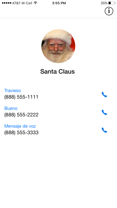 *** ¡LA MEJOR APLICACIÓN DE NAVIDAD DE IPHONE! *** *** ¡LOS MEJORES 100 EN MÁS DE 50 PAÍSES! *** *** ¡SIN COSTES OCULTOS! COMPRA DE UNA VEZ, LO UTILIZAN PARA SIEMPRE! *** *** ¡LAS LLAMADAS SE REGISTRAN AUTOMÁTICAMENTE EN VÍDEO! *** *** ¡NO SE NECESITA CONFIGURAR, SÓLO TIENE QUE DESCARGAR Y LLAMAR! *** *** ¡APRENDER LO QUE SUS HIJOS QUIEREN PARA NAVIDAD! *** *** ¡CREAR LA MEMORIA PERFECTA DE NIÑOS HABLANDO CON SANTA! *** *** ¡DIVERSIÓN INCREÍBLE! TOTALMENTE REALISTA! *** *** ¡UNA NECESIDAD PARA CUALQUIER PERSONA CON NIÑOS! *** ¿Por qué conformarse con una llamada de teléfono viejo y aburrido con Santa, cuando se puede tener un VIDEO LLAMADA padrísimo, divertidísimo y INTERACTIVO con Santa mejor?! ¡"El video llamadas con Santa" le permite realizar chats de vídeo realistas con Santa Claus durante todo el año! Incluso los niños muy pequeños les encantarían ver a Santa mientras que el habla directamente con ellos! ¡Elija una de las tres llamadas interactivas pregrabadas para recompensar a los niños buenos, los niños traviesos, o decirle a Santa cualquier cosa que desee, siempre que quieran! CÓMO FUNCIONA: ¡Sólo elige la llamada y empieza a hablar con Santa! Cada vez que haya terminado de responder a una pregunta, toque en cualquier lugar de la pantalla, y le dirá a su próxima línea de diálogo. Las llamadas se registran automáticamente en vídeo! ¡Es fácil! ¡Llama a Santa tan a menudo como quiera, GRATIS! *** Número 1 en México *** *** Número 1 en Venezuela *** *** Número 1 en Chile *** *** Número 1 en Nicaragua *** *** Número 1 en Uruguay *** *** Número 1 en República Dominicana *** *** Número 1 en Panamá *** *** Número 1 en Argentina *** *** Número 2 en Perú *** *** Número 2 en Costa Rica *** *** Número 2 en Colombia *** *** Número 2 en Guatemala *** *** Número 2 en Ecuador *** *** Número 3 en España *** *** Número 3 en El Salvador *** *** Número 10 en Paraguay *** *** Top 25 Estados Unidos *** *** Top 100 en más de 25 países *** Hay tres llamadas diferentes para elegir: 1) LLAMADA BUENA: ¡Utilice esta llamada cualquier época del año, cuando su hijo ha hecho algo particularmente agradable, y quiere recompensarle asegurándose de que Santa sabe lo bueno que ha comportado! ¡Niños les encanta y quieren hacer las cosas más agradables, para que puedan llamar a Santa otra vez! 2) LLAMADA TRAVIESO: ¡Utilice esta llamada cada vez que su hijo ha comportado mal y que desea ponerlos en línea dejando saber al Santa que ha comportado mal! ¡Esto funciona de verdad y de inmediato hace que los niños de nuevo ponen en marcha por lo que no tendrá que llamar a Santa para decirle que de nuevo ha sido travieso! 3) SANTA DE CORREO DE VOZ: ¡Santa contesta a su teléfono de video con su alegre "mensaje de salida", diciendo que se siente que perdió su llamada! ¡Sólo esperar el tono, y Usted y sus hijos pueden decirle a Santa lo que quieran! Sencillo, rápido y facil! *** ¡VER A SUS HIJOS QUE SE VUELVEN LOCOS! ***