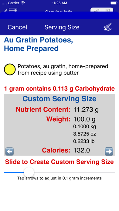 iCarbs is one of 10 iNutrient apps based on the USDA National Nutrient Database. The others include: - iCholesterol (Dietary Cholesterol) - iFiber (Fiber) - iKals (Calories) - iPotassium (Potassium) - iProteins (Proteins) - iSatFat (Saturated Fat) - iSodium (Sodium) - iSugars (Sugars) - Vitamin K (Vitamins K1, K1D & K2) Users can record their intake for any food. The information is maintained for one year and is presented in reverse chronological order grouped by day, so the latest data is presented first in the list. Editing allows for: 1) changing the number of servings; 2) changing the date; and 3) deleting records. Individual Intake Items can be copied to the current day, and all Intake Items for a single day can be copied to the current day. If you are either a bodybuilder or have diabetes this is an app you will truly make use of on a regular basis. The iCarbs app provides information about foods and how they are rated for carbohydrate content. This is provided as a means to assist in deciding which foods to eat. If you are a bodybuilder, you probably want to have a high intake of carbohydrates, but on the other hand if you have diabetes you need to make sure you don't exceed your recommended daily amount of carbohydrates. The food servings are rated from EXTREMELY LOW in Carbohydrates all the way up to EXTREMELY HIGH. The following colors help readily identify which is which: - Black = Rated EXTREMELY HIGH in Carbohydrates (Carbs) (45.01 - 166.46 g) - Dark Red = Rated VERY HIGH in Carbs (30.01 - 45.00 g) - Red = Rated HIGH in Carbs (15.01 - 30.0 g) - Orange = Rated MODERATELY HIGH in Carbs (12.01 - 15.00 g) - Yellow = Rated MODERATE in Carbs (9.01 - 12.00 g) - Yellow-Green = Rated MODERATELY LOW in Carbs (6.01 - 9.00 g) - Green = Rated LOW in Carbs (3.01 - 6.00 g) - Cyan = Rated VERY LOW in Carbs (0.01 - 3.00 g) - White = Rated EXTREMELY LOW in Carbs (0.00 g) Essentially, the cooler the color, the lower the amount of Carbohydrates, with white being the coolest color and black being the hottest (think burnt). There are eight tables listing food servings: - All Foods - Fast Foods - Fruits & Vegetables - Meat, Fish & Shellfish - Dairy & Egg - Cereal Grains & Pasta - Sweets - Snacks The All Foods list allows you to search by any word or partial word from all the Food Titles. Selecting a food in any of the tables will display pertinent information about the selected food serving: - Food Title - Weight (in grams) - Common Measure (serving size for weight) - Protein Content (in grams) - Calories - Percentage of Protein by Weight (if at least 1%) - USDA Description - USDA Food Group - USDA Nutrient Database Number Information is derived from the USDA National Nutrient Database for Standard Reference: Carbohydrate Content of Selected Foods per Common Measure. There are currently over 1,100 different foods included, searchable using more than 2,500 names (some foods are known by different names or how they are prepared, e.g., "Egg, Fried" and "Fried Egg"). A few these have as many as six searchable names. The iCarbs Info screen provides access to additional information pages: - What are Carbohydrates? - Carbohydrates & Diabetes - Highest Protein Foods - How to Use this App - iNutrients Custom Food Definitions (another app with more features and data for 10 nutrients) - Other Important Info. (includes allowance to 1) Report a Problem; 2) Ask a Questions; and 3) Make a Suggestion)