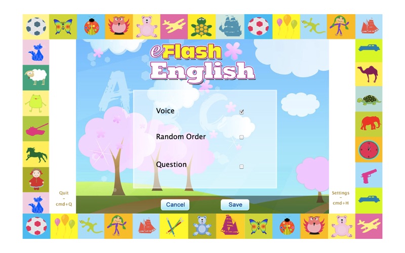 NOW 100% FREE! Introducing the First Baby Flash Cards app on Mac App Store. Over 2 million downloads of iOS version of this app! Categories include: Food items, Animals, Alphabet, Transportation, Numbers, Colors & Shapes, Clothing, Household items, Body Parts, Outdoor items, Music Instruments/Arts & Learning. ★ Kids tested - they love it! Parents tested - they love it! ★ Building vocabulary has never been so much fun ★ 11 Categories - All in 1 App! ★ Large words and letters ★ Large icons and buttons ★ Professional voiceovers recorded in production studio ★ High quality images ★ Real sounds where applicable ★ Question mode for parent-child interaction ★ Great memory building exercise ★ Over 450 words! Building strong English vocabulary has never been so exciting for preschoolers and toddlers. eFlash Educational Baby Flash Cards in English features over 450 high quality images with text and voiceovers. There are additional real sounds where applicable (such as a lion's roar or an ambulance siren) to enhance visual and auditory learning and memory simultaneously. Parents have the option to turn voiceovers off during parent-child learning session and turn voiceovers on when the child is self-learning. They can enable Question Mode to display 4 images and ask the child to click on the right answer. Complexity of words is perfect for ages 1 to 4 so two or more young siblings can play together and even teach eachother!