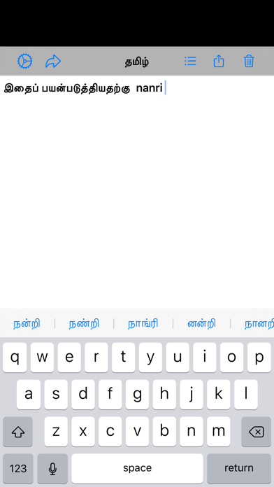 This is a very simple and easy to use application that translates English characters typed into Tamil script. Just type in the Tamil word phonetically in English and press the space key or the Return key. Writing in Tamil has never been so easy!