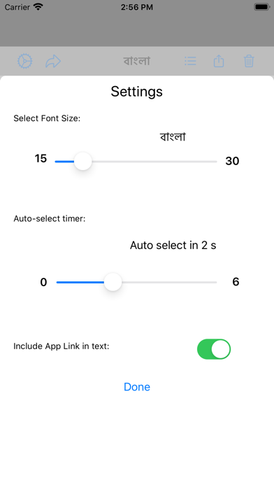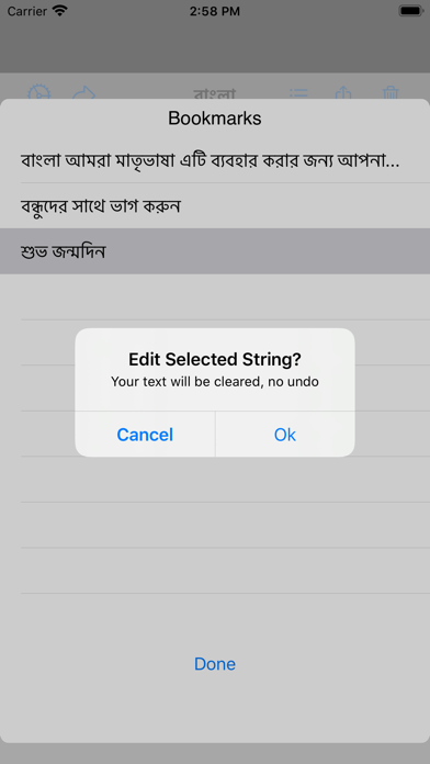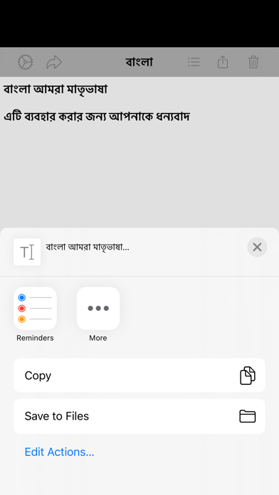 Using the Bangla application users can write text in Bangla script and share it on social media, email or text. This is a very simple and easy to use application that translates the English characters you type into Bangla script. The mappings used in this application are based on phonetic sounds of English letters that map to Bangla letters.