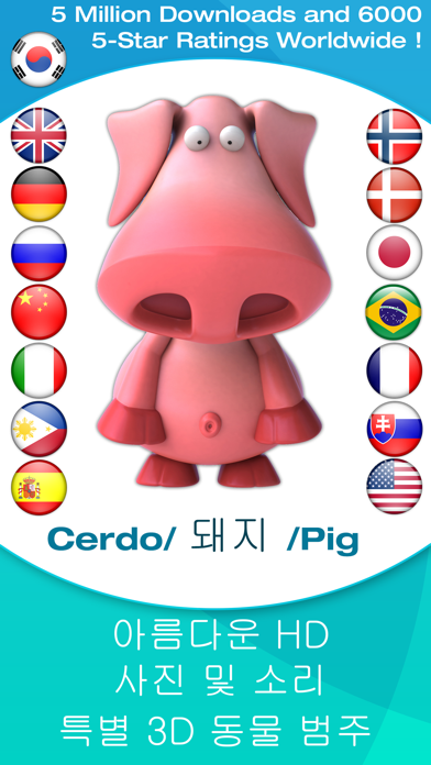 250가지가 넘는 이미지, 동물 소리, 음성 및 문자 설명을 통해 귀하의 소중한 자녀가 즐겁게 학습할 수 있습니다. 아주 쉽게 사용할 수 있습니다. 부모의 입장에서 어린 자녀를 위해 설계한 5가지 범주와 원활한 혁신적 슬라이드 쇼 기능이 있습니다. 각각의 동물이 내는 소리를 들려 주고, 동물 이름을 자국어는 물론 외국어로도 말하고 쓸 수 있도록 해 주는 도구입니다. 걸음마 단계의 아기에게 즐거운 놀이 도구도 되면서 미세한 운동기능 발달에도 도움을 줍니다. 이 앱을 시험적으로 사용해 본 부모와 아기들은 매우 만족해 했습니다! 어린이용 앱은 단순함이 생명입니다. 이 앱은 주 메뉴 없이도 활동이 가능합니다. 동물을 터치하면 확대된 이미지를 볼 수 있고, 동물의 소리를 들을 수 있고 이름이 문자 형식으로 표시됩니다. 화살표를 터치하거나 손가락으로 움직이면 다음 페이지 또는 이전 페이지로 이동하여 더 많은 동물을 볼 수 있습니다. 아주 어린 아이에게는 별도 조작이 필요 없는 단순한 슬라이드 쇼를 실행시켜 주면 편리합니다. 이미지와 소리가 자연스럽게 넘어가므로 어린이가 집중하여 보면서 즐거워합니다. 기능 --------- * 5가지 범주: --- 동물(78가지 동물 사진) --- 만화 속 동물(만화 형식으로 묘사된 동물) --- 우리 주변의 일상적 물건들(도구, 차량 및 전자 장치 28가지) --- 만화로 표현된 우리 주변의 일상적 물건(만화 형식으로 묘사된 도구, 차량 및 전자 장치) --- 3D 보너스(3D 형식으로 된 39가지 동물 및 생물) * 동물 및 도구가 내는 소리 --- 소리를 끄고 음성 설명만 들을 수 있습니다. * 음성 설명 --- 동물 또는 도구의 이름을 영어, 영국식 영어, 불어, 포르투갈의 , 스페인어, 독일어, 중국어, 러시아어, 노르웨이어, 덴마크어, 일본어, 한국어, 이태리 어로 들을 수 있습니다. --- 아기가 두 가지 언어로 발음되는 동물이나 도구의 이름을 들을 수도 있어 이상적인 언어 습득 도구입니다. 외국어를 조기에 접하게 해 줄수록 자녀가 원어민의 음성을 더욱 쉽게 습득합니다. --- 음성 설명을 완전히 끄고 동물 및 도구의 소리만 들을 수도 있습니다. * 문자 설명 --- 선호 언어는 물론 2개 언어로 동시에 이미지에 속한 동물이나 도구의 이름을 볼 수 있습니다. --- 문자 설명을 완전히 꺼 놓을 수도 있습니다. * 가장 어린 연령대의 아기용 단순한 슬라이드 쇼 기능 * 페이지별로 다른 섬네일 개수 --- 모든 페이지마다 큰 이미지 4개 또는 작은 이미지 9개로 환경 설정할 수 있습니다. * 자동 수평 또는 수직 조정(예: 가로 및 세로 방향 모두 작동) * 어린이가 좋아하고 사용이 쉬운 애플리케이션입니다. * HD 사진 및 소리. * 어린이가 좋아하는 밝고 풍부한 색상의 이미지. * 인터넷 연결이 필요하지 않음. * 0~7세 어린이용. 게임 속 동물: 개구리 돼지 벌 수탉 펭귄 개 원숭이 뱀 고양이 곰 암탉 말 도마뱀 물고기 생쥐 암소 사자 개미 나비 악어 공룡 용 여우 카멜레온 무당벌레 바닷가재 모기 올빼미 바다 거북 염소 칠면조 독수리 강아지 표범 팬더 앵무새 코알라 맥 낙타 뻐꾸기 다람쥐 얼룩말 토끼 늑대 고래 닭 물개 양 여우 원숭이 비둘기 하마 고릴라 돌고래 호랑이 기니피그 갈매기 햄스터 비버 새 들소 오리 까마귀 게 코브라 백조 영양 스컹크 기린 고슴도치 북미산 큰 사슴 플라밍고 펠리칸 황소 코끼리 타조 코뿔소 코요테 독수리 하이에나 당나귀 파리 북극곰 박쥐 딱따구리 캥거루 상어 새우 달팽이 큰부리새 게임 속 도구: 피아노 비행기 버스 문 드릴 세탁기 전화 알람 시계 경찰 소방관 구급차 자전거 오토바이 믹서기 자동차 현금 동전 화재 소방차 휴대폰 대양 기차 전차 트럭 진공 청소기 바이올린 화산 키보드 ------------- 귀여운 자녀를 위해 이 값진 앱을 다운로드해 보세요. 자녀들이 재미 있게 놀이하면서 많은 것을 배우게 됩니다.