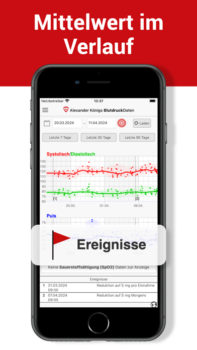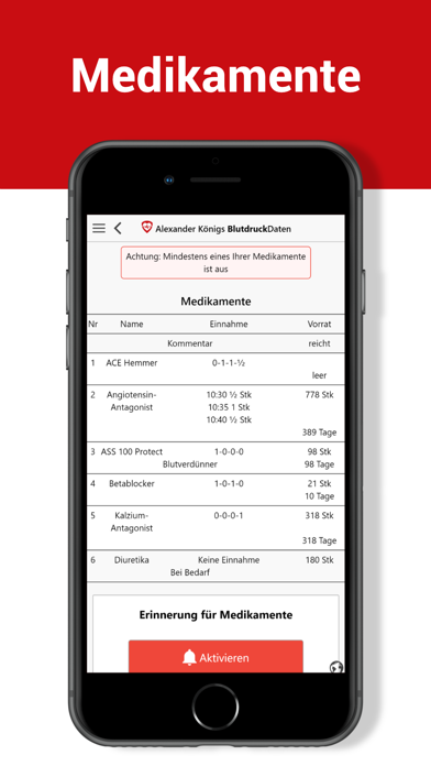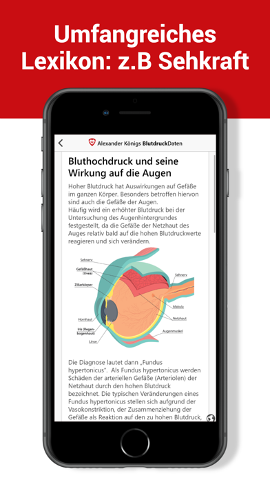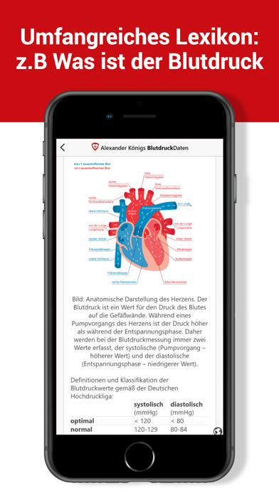 BlutdruckDaten ist von der Deutschen Hochdruckliga geprüft. Mit BlutdruckDaten bekommen Sie Ihren Blutdruck in den Griff. Erfassen Sie Ihre gemessenen Werte leitlinienkonform schnell und einfach. BlutdruckDaten zeigt Ihnen wie. Sie erhalten eine direkte Rückmeldung nach jeder Messung. Ihre persönliche Verlaufskurve wird dann als aussagekräftige graphische Auswertung auch Ihren Arzt begeistern. Ärzte und Apotheker empfehlen BlutdruckDaten! Top Features: - dauerhaft kostenlos nutzbar - BlutdruckDaten steigert Ihre Gesundheitskompetenz. - Leitliniengerechte Hinweise zur Durchführung von Messungen - Erinnerung an Blutdruckmessungen - Medikamentenverwaltung mit Lagerbestand und Tabletten-Erinnerung - einfaches Erfassen Ihrer Blutdruckwerte (manuell oder per Bluetooth*) - Aussagekräftige Diagramme und Statistiken - PDF-Auswertungen zur optimalen Unterstützung der ärztlichen Behandlung - Nutzung von zu Hause und unterwegs durch Datensynchronisation - Verwaltung der Daten mehrerer Personen auf einem Gerät - Optionale Erfassung weiterer Vitalwerte (Blutzucker, Gewicht, Körpertemperatur, Trinkmenge) - Extras: Blutdruck-, BMI- und Salzrechner, Blutdruck-Infothek - Blutdruck-Telemonitoring mit SciTIM - Apple Health Unterstützung *Wir unterstützen Geräte von A&D, Beurer, boso, Crane, Medisana, Omron, Sanitas, Silvercrest, Soehnle, Stayfit und Veroval. Eine Liste mit allen Gerätebezeichnungen finden Sie unter https://www.blutdruckdaten.de/faq/bluetooth.html Ihre Sicherheit und die Ihrer Daten ist uns äußerst wichtig! - Deutscher Datenschutz, Deutscher Serverstandort (ebenfalls ISO 27001-zertifiziert) - Keine Datenweitergabe an Dritte oder sonstige Nutzung Ihrer Daten - Anonyme oder pseudonyme Nutzung möglich - Alle Inhalte medizinisch fachlich geprüft - Healthon-App Ehrenkodex für vertrauensvolle Gesundheitsinformationen in Apps Experten-Meinungen zu BlutdruckDaten finden Sie unter https://www.blutdruckdaten.de/ Die Nutzung ist anonym als Gast oder mit einer kostenfreien Registrierung möglich. Die BlutdruckDaten App und der Dienst BlutdruckDaten, können dauerhaft kostenfrei genutzt werden. Die Premium-Mitgliedschaft mit weiteren Funktionen ist für Förderer erhältlich. Die Kosten betragen 49,99 Euro pro Jahr oder 4,99 Euro pro Monat. Darüber hinaus bietet BlutdruckDaten SciTIM interventionelles dezentrales Blutdruck-Telemonitoring (idTM). Die Premium-Mitgliedschaft (monatliches oder jährliches Abonnement) kann als In-App-Kauf abgeschlossen werden. Dieses verlängert sich automatisch, wenn keine Deaktivierung bis spätestens 24 h vor Ende der aktuellen Periode erfolgt. Innerhalb der 24 h vor Ablauf wird das Konto, unter Nennung der Kosten für die Verlängerung, belastet. Abonnements können in den Kontoeinstellungen des App Stores verwaltet und die automatische Verlängerung deaktiviert werden. Evtl. bestehende Restzeiten einer kostenlosen Probezeit verfallen bei Erwerb des Abonnements. Die Abwicklung erfolgt direkt über den App Store. Unsere AGB finden Sie hier: https://www.blutdruckdaten.de/agb.html Achtung: Die BlutdruckDaten App dient der Erfassung von Blutdruckdaten. Eine direkte Messung des Blutdrucks ist technisch nicht möglich. Sie benötigen weiterhin ein Blutdruckmessgerät. Keine Anwendung bei: Minderjährigen, unzureichenden Sprachkenntnissen, starker Sehschwäche Bei Problemen mit BlutdruckDaten bewahren Sie bitte Ruhe und senden eine Problembeschreibung mit Angabe des benutzten Gerätes an unseren Support. Die Abgabe einer schlechten Bewertung schadet Ihrem eigenen wie auch dem Blutdruck unserer Programmierer ;-)