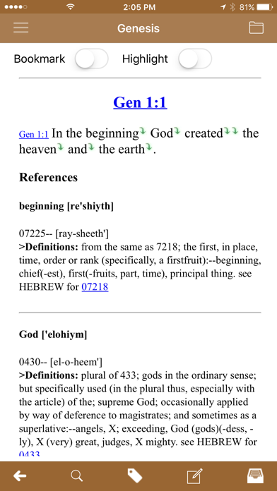 The Bible Study Suite app has undergone a complete overhaul. It is now better than ever. It's focus is Bible study in its purest form including links on virtually every word in the Bible to the original Hebrew and Greek word and definition. Also included is the most popular Bible Dictionaries and Topical Guides. Including OVER 1 MILLION CROSS-REFERENCE LINKS between the Bible and other works, and quick access to the information you are looking for using powerful searches and navigation tools, the Bible Study Suite will make your study and understanding of the Bible more rewarding than ever before. It's complete with the ability to add custom topical tags, highlighters, personal notes, bookmarks, and more. Includes: •Holy Bible - KJV •Nave's Topical Bible •Strong's Hebrew Dictionary •Strong's Greek Dictionary •Strong's Concordance •Easton's Bible Dictionary •Smith's Bible Dictionary •Over One Million Cross-Reference Links: No Kidding! This collection includes literally over ONE MILLION CROSS-REFERENCE LINKS. Virtually every word of the Bible is linked to the Hebrew and Greek dictionaries and Strong’s Concordance giving you further insight to the original meaning of the passages you are reading. Also… the scriptures references in the dictionaries, topical guide, and concordance are linked back to the Bible. The Nave’s Topical Bible includes OVER 34,000 KEY AND SUB-TOPICS listing every corresponding verse which is linked back to the Bible. Other Features: •Create multiple windows and toggle back and forth as us cross-reference and study (study and compare several verses/passages) •Topical Custom Tags (Topically tag references) •Highlighting •Bookmarks •Personal Notes •Full Search •Focus View (see all cross-references from the verse or word you are studying in one convenient window.