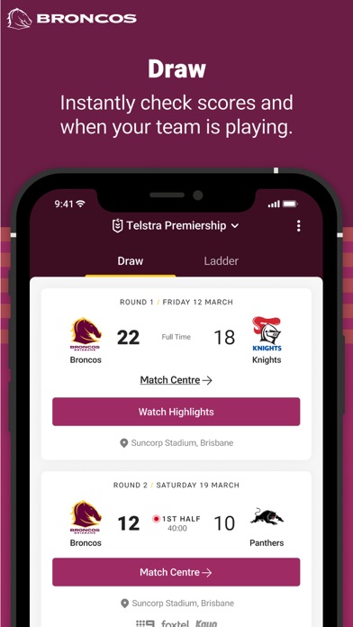 Welcome to the brand new Official Brisbane Broncos app. Our completely redesigned experience gives you access to your favourite team and favourite players - plus you'll get breaking Broncos news, live scores, stats, game day information and match highlights. It's everything you need to know about the Broncos, no matter where you are. With its updated interface and improved navigation, the Official Brisbane Broncos app is packed with features and content, including: • Full team lists • Extensive pre, live and post-match coverage • Video, including match and player highlights. The Official Brisbane Broncos app will keep you in the front row. Download now and never miss a minute of the greatest game of all!