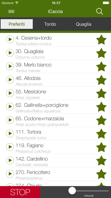 Sei un cacciatore e vuoi ascoltare ed imparare tutti i canti degli uccelli e della selvaggina? Ami fare birdwatching per osservare da vicino gli uccelli? Scarica subito Caccia la grande raccolta di richiami di tutte le specie cacciabili e non. I richiami sono suddivisi in 13 categorie: - Tordo - Quaglia - Merlo - Allodola - Acquatici - Columbidi - Galliformi - Fringillidi - Passeriformi - Trampolieri - Rapaci - Mammiferi - Altri - Per ogni categoria diverse tipologie di richiamo utili per ogni situazione. - Tutti i richiami hanno un'ottima qualità audio. - Si possono aggiungere i richiami preferiti ad una lista facilmente raggiungibile. - E' integrata la funzione di ricerca - L'app funziona anche in background - Può essere connessa a tutti i dispositivi audio esterni L'elenco dei richiami: Cesene, Tordomisto, Schiamazzo e bottaccio, Cesena e tordo, Tordela e sassello, Schiamazzo, Tordo chio, Schiamazzo e zirlo, Tordo zip, Tordo, Quaglie, Quagliaia, Quaglia, Quaglie femmina, Merlo, Merlo bianco, Tordo e merlo, Allodola, Allodole, Mestolone, Volpoca, Folaga, Germano, Gallinella e porciglione, Folaga e gallinella, Codone e marzaiola, Moretta e fischione mashio, Moriglione e fischione, Gallinella dacqua, Fistione turco, Germano e mestolone, Germane e fisshione maschio, Marzaiola, Folaga e canapiglia, Codone e mestolone, Tuffetto, Tortora collare, Tortora, Colombacci, Colombaccio, Pernice bianca, Fagiano, Cedrone, Gallo forcellos, Pernice rossa, Starna, Pernice sarda, Coturnice, Fringuello e peppola, Cardellino, Fringuello, Lucherino, Peppola, Cornacchia, Prispolone, Passera, Ghiandaia, Strillozzo, Pispola, Storni, Fanello, Capinera e rigogolo, Rigogolo, Lucarino, Culbianco, Fringuello e verdone, Storno fischio, Gazza bosco, Rondone, Beccafico, Pispola e spioncello, Verdone, Cutrettola, Lucarini, Usignolo, Passero, Martin pescatore, Pettirosso, Calandra, Frosone, Cappellaccia, Chiurlo, Fenicottero, Combattente, Beccaccino, Gru, Pittima reale, Falco pellegrino, Gheppio, Allocco civetta, Sparviero, Civetta bosco, Albanella reale, Falco poiana, Falco lodolaio, Assiolo, Nibbio reale, Cinghiali piccoli pastura, Cervo, Coniglio, Capriolo, Cinghiale, Daino, Volpe, Totano moro, Pavoncella, Upupa, Piviere, Gabbiani, Ortolano, Porciglione, Beccaccia, Gruccione, Beccaccino e gallinella, Corvo, Allodolamix, Alzavola e marzaiola, Alzavole, Alzavole mix, Alzavole e folaghe, Alzavola, Alzavola e germano, Canapiglia, Codone, codone2, Fischione, Fischione e Canapiglia, Moretta, Moriglione, Siriri Colorado, Siriri Pampa, Gazza, Oca Comune, Oca Granaiola, Oca Lombardella, Oca selvatica, Taccola, Piccione, Faggiano, Gallo Cedrone, Gallo Forcello, Balestruccio, Cinciallegra, Crociere, Storno, Barbaggianni, Biancone, Sassello, Cesena, Cesena e sassello e zirlo, Tordela, Bottaccio, Francolino di monte, Gallinella, Garzetta, Piviere dorato, Il Team non si assume nessuna responsabilità sull'utilizzo improprio di questa applicazione. Si ricorda che l'uso dei richiami è severamente vietato per uso venatorio e in attività dirette di caccia per quanto previsto dall'art.21, comma 1, lettera 'r' della legge 157/92.