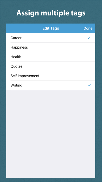 Short Notes is a simple but powerful app that helps you capture your ideas quickly. Wherever and whenever you are, you will never miss any of your ideas again. Short Notes encourages you to be concise by limiting a note's length to 250 characters. It also helps you organize your ideas by allowing you to assign multiple tags to a note. Reading your notes is convenient because you can read them as a continuous stream. It's just like reading a Twitter timeline. FEATURES * Assign multiple tags to a note. * Read through your notes seamlessly. You don't need to tap anything to read the content of your note. Instead, you can read the content of multiple notes directly on one screen. * Search inside your notes to find exactly what you want. * Mark notes as favorites. * Sort your notes the way you want it. You can sort your notes by creation date or last modification date, in ascending or descending order. * Export your notes based on the criteria you specify. You can choose to export only the notes that meet certain date and tag criteria. This way you will get only the notes you want. * Type faster in landscape mode. Landscape mode gives more space for the on-screen keyboard so you can type faster. * Backup your data. * Set a passcode.