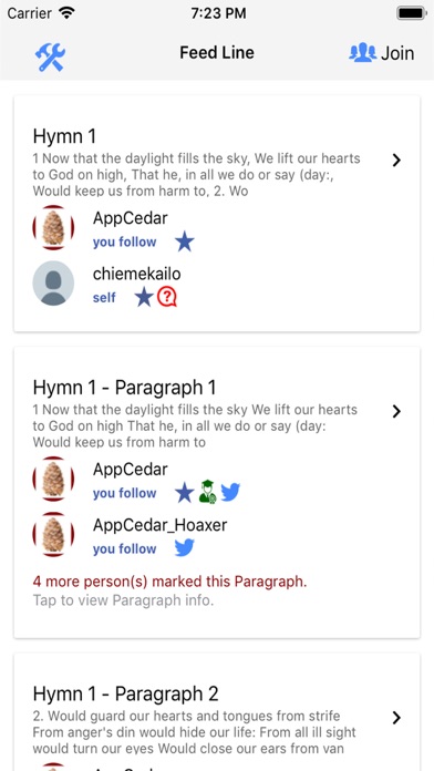 Hymn Ancient & Modern Hymn Book - Your connection to 'loving' moments. The joyous CAROLS! Hymn Book is that old Ancient & Modern hymns brought on a digital platter to your mobile device. Collaboration is the key to the fun this app brings. You will be able to interact with friends and loved ones. In this Hymn Book app, you will be able to like specific hymns, tweet/pin your nostalgic feelings. You will be able to see people you follow who have also liked specific hymns. Stop wasting your time searching for the lyrics for that favorite hymn on the web, Hymn Book includes all those old favored carols & songs. Mark your Favourite Hymns and your friends on Facebook who have also downloaded this app will see those hymns you like. Your Friends who also liked a hymn, will be displayed to you. Post Hymn items to Facebook will append the selected Hymn text to a lovely image, and post same to your timeline (visible only to the scope in your privacy settings). You have the option to tag friends. Why should you should download this App today!?! How many hymn numbers do you know from the old book? Even as a chorister. Do you need to swiftly search for a hymn by title? Hymn Book can select hymns by hymn numbers (iPhone, iPod, iPad & BlackBerry smart phones) and also by a string of text one might remember (iPhone, iPod & iPad), and can store favorite hymns numbers and text searches for quick reference at another time. Hymn Book is great for regular church-going public who can combine both bible and hymn book in one convenient mobile device. To ensure this app is useful to the largest number of people ..., Hymn Book will continue to add more hymns and songs in the public domain as extensions to the basic Ancient & Modern hymn book. Download Hymn Book now and you'll always have a joyous company with you wherever you go. For a quick reference / overview, the following are just a few of the songs included in this book: Abide With Me All Hail The Power Of Jesus Name All Things Bright And Beautiful For The Beauty Of The Earth Holy, Holy, Holy! Jerusalem Just As I Am Nearer, My God, To Thee O For A Thousand Tongues To Sing Praise, My Soul, The King Praise To The Lord The Almighty Rock Of Ages Take My Life, And Let It Be This Is The Day There's a friend for little children Gentle Jesus, Meek and Mild While shepherds watched their flocks by night