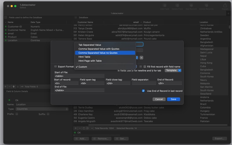 Smart, fast, and realistic data generation for developers, testers, and power users. Data Creator is a powerful macOS app that lets you generate large volumes of custom, realistic data in just a few clicks. Whether you're a developer, QA engineer, or designer, it's the perfect tool for prototyping, stress-testing, and showcasing apps and websites using meaningful, heterogeneous data. With a rich internal database of over 50 field types — including names, countries, dates, addresses, email formats, and more — you can build datasets that look real and varied. Define your own structure with flexible fields, custom prefixes/suffixes, date ranges, and number ranges. Then export your records to CSV, TSV, HTML, or any custom format. Highlights: • Generate thousands of records in seconds • Choose from 50+ data types: names, animals, colors, fruits, emails, and more • Use realistic locale-aware names (e.g., US, German, French, Italian) • Add custom columns at any time • Apply formatting: prefixes, suffixes, decimal settings, and custom date ranges • Manage records like a mini-database (add, delete, sort, undo, refresh) • Save reusable document templates with full data structure • Export in CSV, TSV, HTML, or user-defined custom formats • Clean and intuitive native macOS interface • Supports tabs, autosave, full-screen, merge, undo, and the latest macOS features Perfect for: • Generating demo or placeholder data for apps and websites • Stress-testing data structures with tens of thousands of records • Creating realistic datasets for QA and UI/UX testing • Producing sample data for spreadsheets, reports, or dashboards • Demonstrating app behavior with believable sample content How it works: Choose your columns — from common data types to unique or randomized fields Set options like quantity, formatting, and field-specific rules Generate and preview your dataset Export to your desired format — or save for future editing Data Creator streamlines your data generation workflow with power, flexibility, and simplicity. Whether you're building a database mockup, testing performance, or just need smart-looking data, it’s your go-to tool.