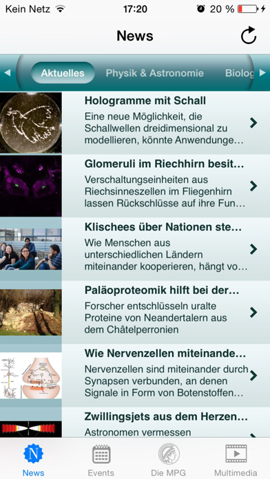 Aktuelle News und Trends aus der Grundlagenforschung: Diese App liefert Ihnen Informationen direkt aus der Forschungsarbeit der Max-Planck-Institute. So haben Sie stets mobilen Zugriff auf neuste wissenschaftliche Nachrichten, Videos und Hintergründe. Tauchen Sie ein in die faszinierende Welt der Spitzenforschung. Die App bietet dem iOS-Nutzer eine Reihe wichtiger Funktionen: • Zugriff auf aktuelle Pressemeldungen zu den wissenschaftlichen Forschungsergebnissen der Max-Planck-Institute. • Ein nach Fachgebieten geordnetes Nachrichtenangebot. • Links zu den Max-Planck-Instituten, eingebunden in eine Online-Karte. • Möglichkeit, Pressemeldungen an Freunde/Kontakte zu mailen. • Übersicht über die Geschichte der Max-Planck-Gesellschaft und ihrer Vorgängerorganisation, der Kaiser-Wilhelm-Gesellschaft. • Kontaktdaten und Informationen zur Generalverwaltung der Max-Planck-Gesellschaft, eingebunden in eine Online-Karte. • Multimedia-Kanal mit einem Link zum umfangreichen Videomaterial der Max-Planck-Gesellschaft auf dem eigenen YouTube-Kanal. Diese App wird ständig erweitert, ergänzt und aktualisiert. Helfen Sie uns, “MaxPlanckApp” zu verbessern und schicken Sie Ihr Feedback an: [email protected] Firma: Max-Planck-Gesellschaft http://www.mpg.de/ Aktualisiert: 06.03.2012 Version 1.0.0 Altersfreigabe: 4+