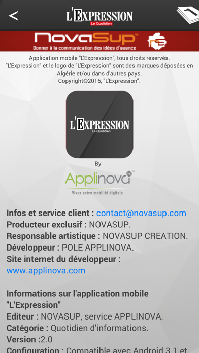 Découvrez une application gratuite, qui permet de consulter l’information en continu, de partager avec vos amis les derniers articles par mail, de les publier sur FaceBook ou Twitter. Une option d’agrandissement du texte est également disponible, pour vous permettre un meilleur confort de lecture. Le dossier favoris vous permettra de garder précieusement les articles choisis dans votre application, une fois l’actualisation effectuée , plus besoin d’être connecté , profitez librement de l’Expression en mode Offline… Après des semaines de préparatifs et deux essais, le journal L’Expression a tiré son premier numéro le 11 novembre 2000. Créer un nouveau journal dans un paysage informationnel saturé était une véritable gageure. Un défi qui a été relevé avec bonheur, puisque le journal, outre de tenir un solide créneau, se positionne à peine quelques mois après sa création, parmi les cinq premiers titres en langue française en Algérie. Il suffisait donc d’y croire et laisser l’expertise faire le reste. L’équipe de L’Expression y a cru, en dépit du scepticisme de certains. Certes, cela n’a pas été facile d’autant qu’il fallait continuellement se remettre en cause, améliorer le contenu et « coller » à l’information avec l’art et la manière de la traiter. C’était, c’est toujours, la préoccupation majeure des journalistes soucieux de confectionner un bon produit qui puisse répondre aux demandes et aux attentes des lecteurs. L’équipe de L’Expression mise sur pied par Ahmed Fattani s’est donc attelée à fabriquer un journal moderne et diversifié. De la même manière qu’il l’avait fait auparavant en créant le quotidien Liberté. L’objectif assigné a-t-il été atteint ? L’Expression se maintient aux alentours de 50.000 exemplaires par jour. Un chiffre qui le place en bonne position dans la hiérarchie de la presse nationale ayant fidélisé un large lectorat capté dans toutes les strates de la société. Le chemin emprunté par L’Expression n’a pas été facile, jonché qu’il a été par divers obstacles que le journal a pourtant réussi à franchir. Mais, peut-on parler de facilité lorsque le challenge est de présenter constamment un journal répondant aux préoccupations des Algériens ? Pour cela il fallut progresser, travailler plus…La presse en Algérie n’a jamais été une sinécure, en fait. Aussi, dire, écrire, publier, voilà le dilemme auquel a été, est confrontée la presse en général et plus particulièrement dans notre pays où l’environnement n’a pas été, n’est toujours pas ou si peu, propice à l’éclosion d’une presse crédible, qui respecte et se fait respecter. Aussi vrai que la perfection n’est pas de ce monde, nous savons qu’il nous faut être toujours plus exigeants. Qu’il nous faut inculquer l’esprit du travail bien fait et le goût de l’effort à tous les jeunes journalistes encadrés par des professionnels ayant une riche et longue carrière. Cette année, le journal fêtera son 12ème anniversaire. D’autres défis l’attendent au futur dont le plus important est le recul de la langue française. Ce qui rend le renouvellement de la ressource humaine aléatoire et l’augmentation du lectorat dans la langue de Voltaire extrêmement difficile. L’irrésistible avancée de la presse électronique menace également l’ensemble de la presse écrite dite « papier » dont nous faisons partie. Nous tirons, toutefois, notre optimisme de l’amour pour notre métier et du professionnalisme qu’il permet pour pérenniser les performances de notre journal et endiguer les menaces qui pointent. C’est une tâche exaltante que de fabriquer, chaque jour que Dieu fait, notre journal en promettant que celui du lendemain sera mieux que celui de la veille. S’il fallait un secret de réussite, il est là !