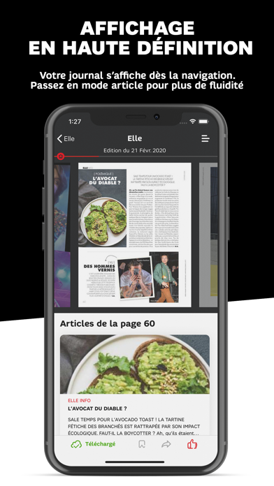 La combinaison intelligente du meilleur d’un kiosque de Presse* et de flux d'information temps réels. En plus de vos titres favoris, des vidéos exclusives et de flux d’articles en provenance des grandes marques média. - Un accès instantané à la lecture de vos publications numériques. La liseuse PDF laisse place à une lecture par rubrique, par page, par article pour un accès plus simple à l'information. - Un catalogue enrichi par de nouveaux contenus presse - Un catalogue enrichi par de nouveaux contenus exclusifs* - De l’information de qualité et une sélection des plus grands titres de presse* - Une page d’accueil personnalisable en fonction de vos titres favoris et de vos préférences - Un accès hiérarchisé, thématisé et personnalisé - Un moteur de recherche ultra-rapide - Des alertes intelligentes pour être au courant de l’actu en temps réel - Un fil continu d’information avec des mises en avant et des vidéo - Disponible en offline et multi-device (smartphone, tablette et ordinateur) - Consultable également à l’étranger - Possibilité d’épingler pour sauvegarder les articles préférés - Partage social et like ! De nombreuses thématiques couvertes* : Actualités, Presse régionale quotidienne, Economie & High Tech, Féminins, People, Sport & Auto-Moto, Culture & Divertissement, Décoration & Cuisine et Jeunesse * La liste des titres est sujette à modification sans préavis, merci de vérifier la disponibilité des magazines directement dans l'application