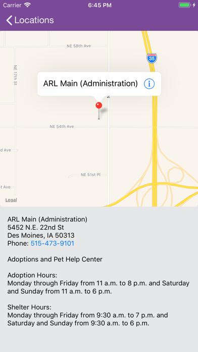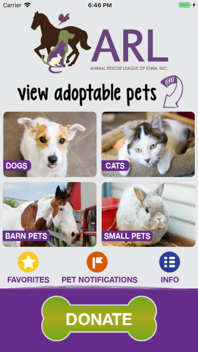 The Animal Rescue League of Iowa is located in Des Moines, IA and serves the pets and people in our community. The ARL app allows you to view all the pets that are currently available for adoption and the pet lists update every 30 minutes. Looking for a specific pet? Set up parameters to receive notifications and when a pet matches your criteria you’ll be notified and can come meet the pet! You will also find all of our locations, access to the ARL Animal Connection podcast, list of upcoming events, and can donate to the ARL to support the thousands of homeless animals that come through our doors every year.