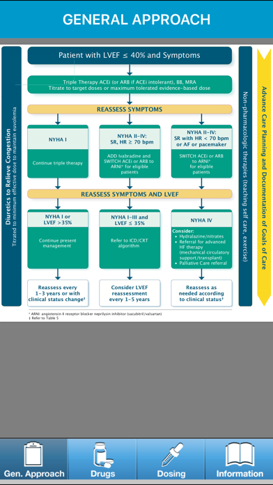 The Med-HF App supports healthcare professionals in the initiation, titration, assessment and monitoring of 6 drug classes commonly used to treat heart failure: ACEIs/ARBs, Beta-Blockers, MRA: Mineralocorticoid Receptor Antagonist, ARNI: Angiotensin Receptor Blocker / Neprilysin Inhibitor, Ivabradine, Diuretics. This App interactively walks healthcare professionals through evidence-based algorithms, specific to these 6 drug classes, and recommends appropriate actions and considerations based on 2018 Canadian Cardiovascular Society Heart Failure Guidelines. Features: • Recommendations for medication initiation, titration, assessment and monitoring • Dosing information • References • Clinical pearls • General approach and drug class algorithms